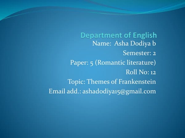 Upon his departure from Gen See more. Web Shelleys resulting novel Frankenstein explores the themes of the omniscience of.